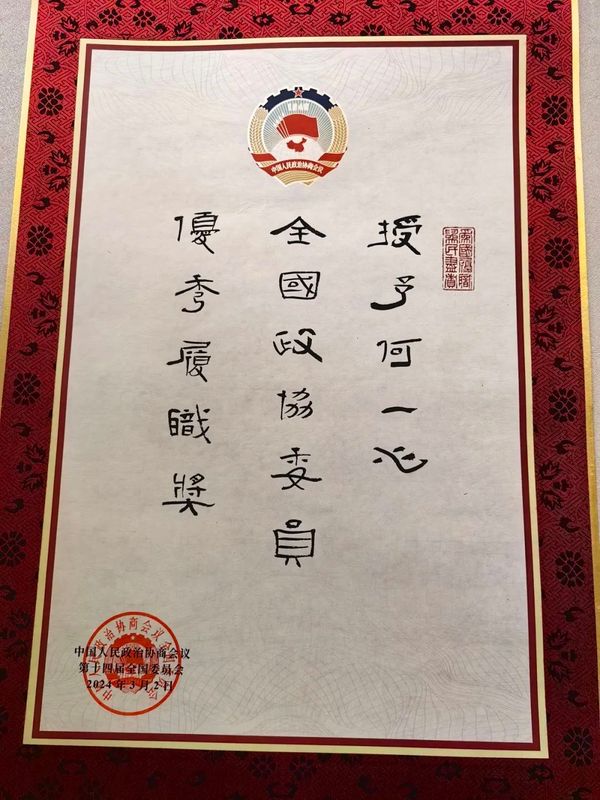 何一心直言,“十余年的履职之路,我始终感受到来自政协组织的培养和关怀,切身体会到政协工作为推动我国经济社会全面发展所发挥的积极作用。荣誉的背后,既是对我过去工作的肯定和鼓励,更是对我未来工作的期望和鞭策。我将一如既往,倍加珍惜,奉己之力,为政协事业和社会发展作出更大的贡献。”