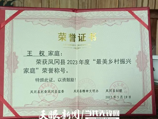 择一业,爱一生。凭着静得下、坐得住、不浮躁的平常之心,凭着一丝不苟的匠人之志,一家人种好茶、管好茶、做好茶、卖好茶。正因如此,他们获得各级大小奖若干,王权本人2022年度获得“最美遵义城·最美凤冈人——最美退役军人”称号,2023年获得“遵义市退役军人创业之星”及“遵义市五一劳动奖章”称号。