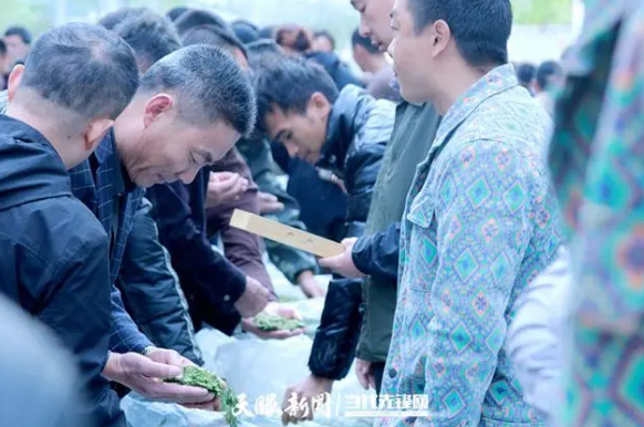 2月22日上午,位于普安县茶源街道的早茶交易中心,人潮涌动,普安春茶从这里发往全国各地。