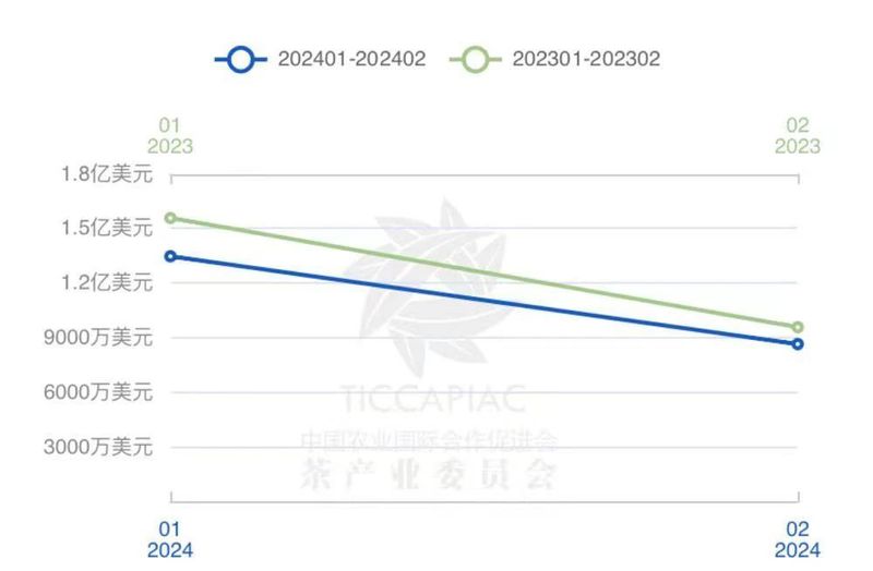 据中国海关数据,2024年1月-2月,中国茶叶累计进口量为5257.1吨,累计进口额为2031.1万美元。