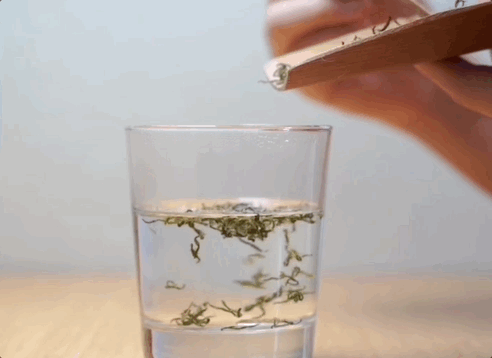 🍵如何冲泡:冲泡玉露茶,以80°C至90°C左右的热水,沿玻璃杯边缘轻柔注水,注入杯中1/3处,浸泡1、2分钟后可饮用。