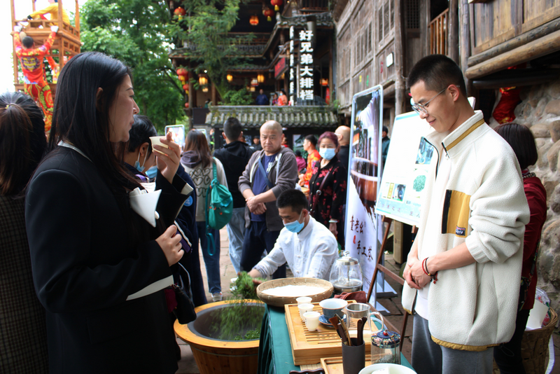 每逢周末,童浩都会去柳江古镇现场炒茶,让游客亲身体验手工制茶的乐趣。在平时,童浩还会义务为大家讲茶课,让群众们在课程中学茶艺、品茶味、悟茶道。