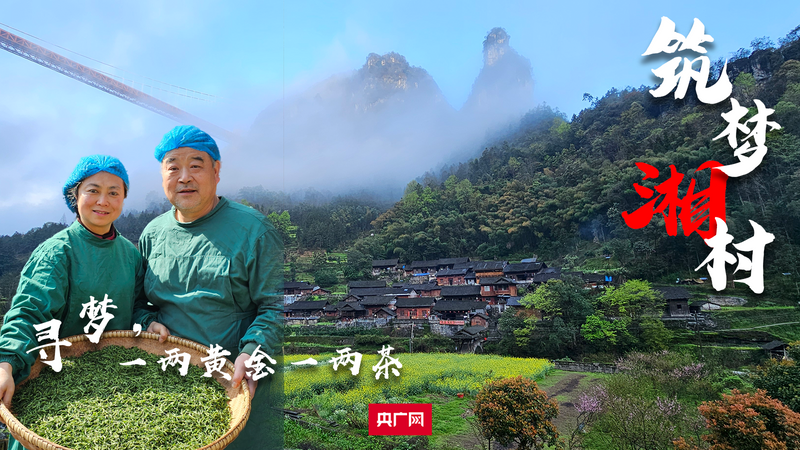 记者要采访的乡村筑梦者,就在阳光升起处的远山下——湖南省湘西土家族苗族自治州吉首市矮寨镇坪年村,一个曾经的国家级贫困村,现在的脱贫致富村,村民在党和政府的引领帮扶下,依靠种植黄金茶,走出了一条欣欣向荣的康庄大道。
