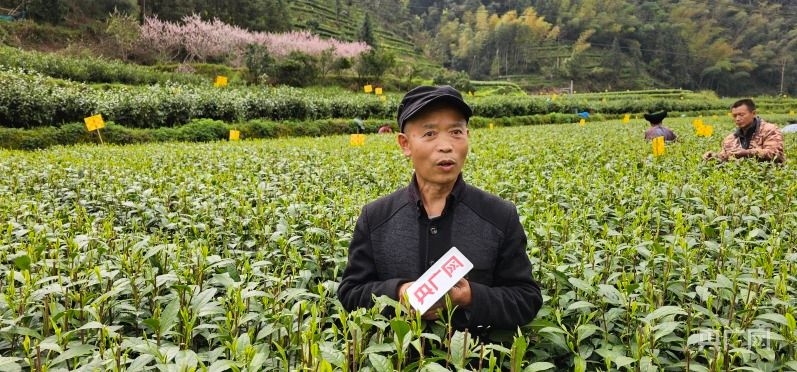 老支书杨太平介绍,种植黄金茶让坪年村脱贫致富(央广网记者张志诚 摄)