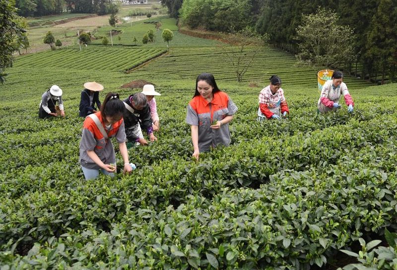 忙碌在茶园里的赵小意(右三)