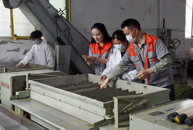 在翠鸣硒茶叶加工厂忙碌的赵小意