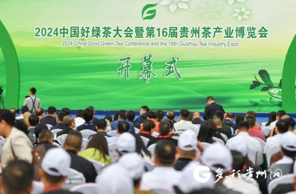 4月18日,2024中国好绿茶大会暨第16届贵州茶产业博览会开幕式在遵义市湄潭县中国茶城广场举行。