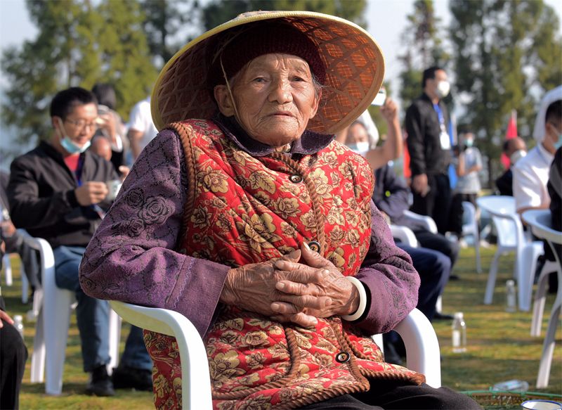 2022年春茶开采季,91岁的李翠兰老人受记者采访,摄影 许文舟