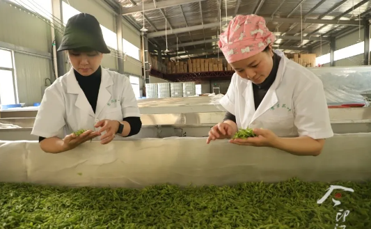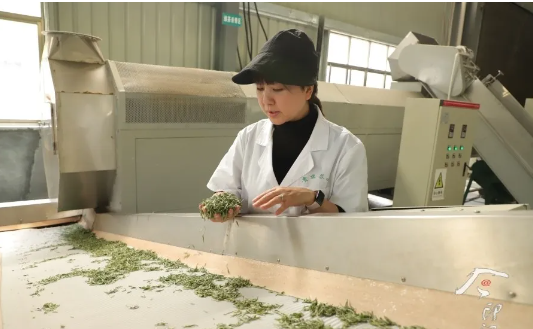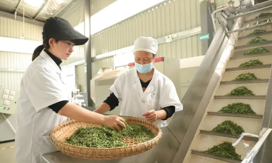 而在山下的贵蕊农业发展有限公司加工车间内,制茶机械正在全速运行着,总经理晏施娟一边关注着茶叶情况一边指导工人,“杀青是根据茶青原料的嫩度来控制温度,遵循‘嫩叶老杀,老叶嫩杀’的做法,经过高温杀青后茶叶表面比较脆,所以要降温回软后再开始揉捻,这样能保证茶叶在冲泡的过程中茶底的完整度。”
