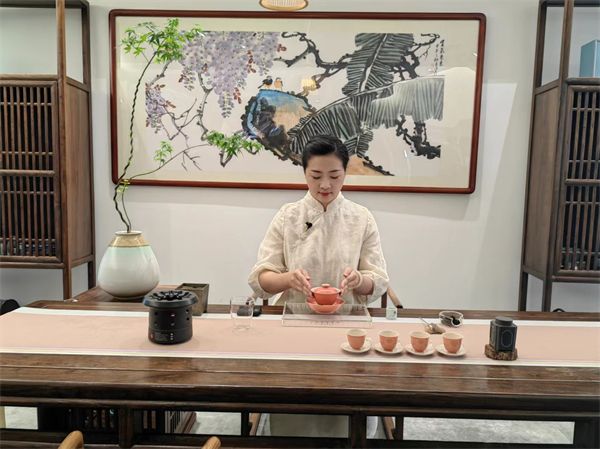 冯丹绘进行茶艺展示。