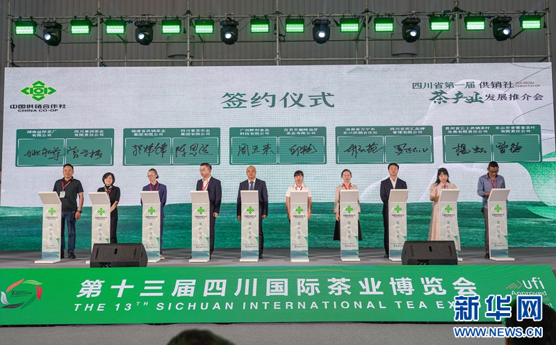随后,中国茶叶流通协会名誉会长、中国茶叶学会监事长、四川省茶叶流通协会会长王云发布了2023年四川茶产业行业发展报告。四川、湖南、福建省供销社下属的茶企作了现场推介。活动最后举行了现场集体签约。