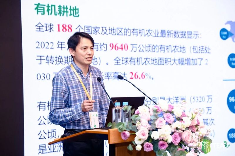 南京国环有机产品认证中心副总经理、国家有机产品高级检查员中国认证认可协会注册技术与申投诉委员会专家工作组成员张伟超先生介绍了国内外有机产业的发展现状,分析了中国有机产业的发展潜力。同时分享了双碳战略下茶叶生态价值实现的路径、茶园减碳固碳助力农业低碳生产目标的实现、以及推动茶园绿色低碳转型的重要意义。