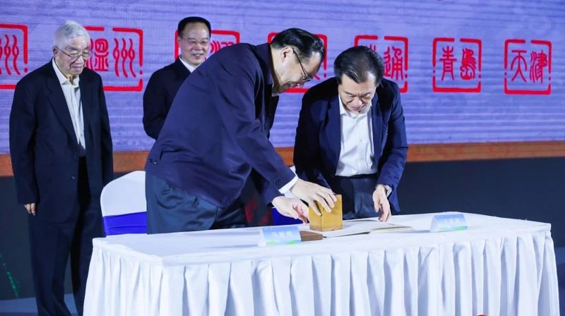 在湖北省政协主席、茶产业链链长孙伟及中国工程院院士、中国农科院茶叶研究所研究员陈宗懋的见证下。湖北省政协副主席马旭明与中国国际茶文化研究会常务副会长、浙江省人民政府原副省长王建满共同加盖印信并签字。