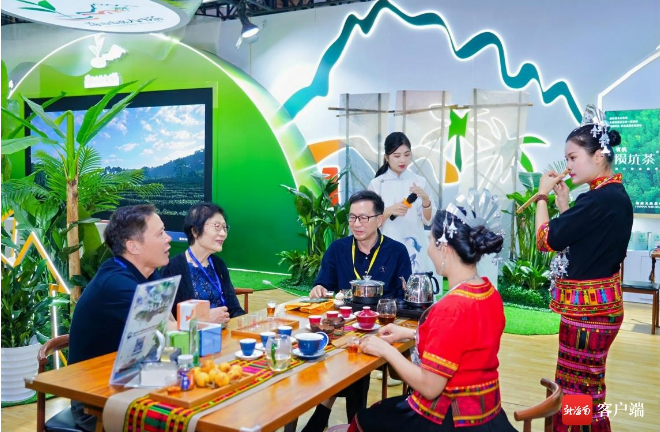 今年茶博会以“茶和世界·共享发展”为主题,集结了10多个国家和地区800多家优质品牌茶企。其中,海南以“雨林藏大叶,海岛茗香远”为主题,设置海南雨林大叶茶馆,吸引众多客商对接洽谈。