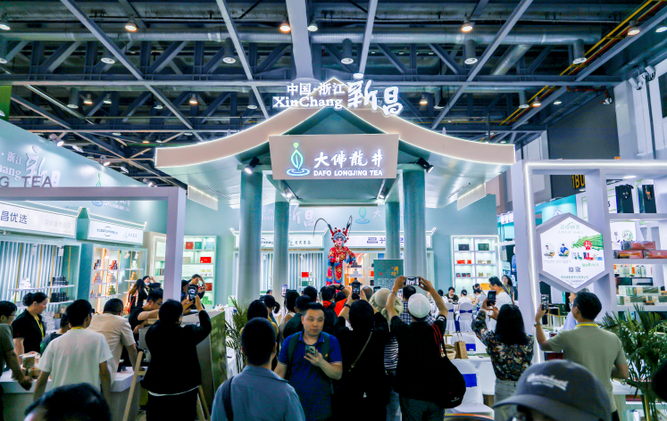 除了传统的“杯泡热饮”,大佛龙井冰淇淋、大佛龙井精酿啤酒等新式茶饮衍生产品也受到了年轻人的热烈追捧。展区内精彩的新昌调腔表演,也吸引路过的客商纷纷驻足观看,为广大买家团体和观众带来了更加丰富的参展和场景化消费体验。