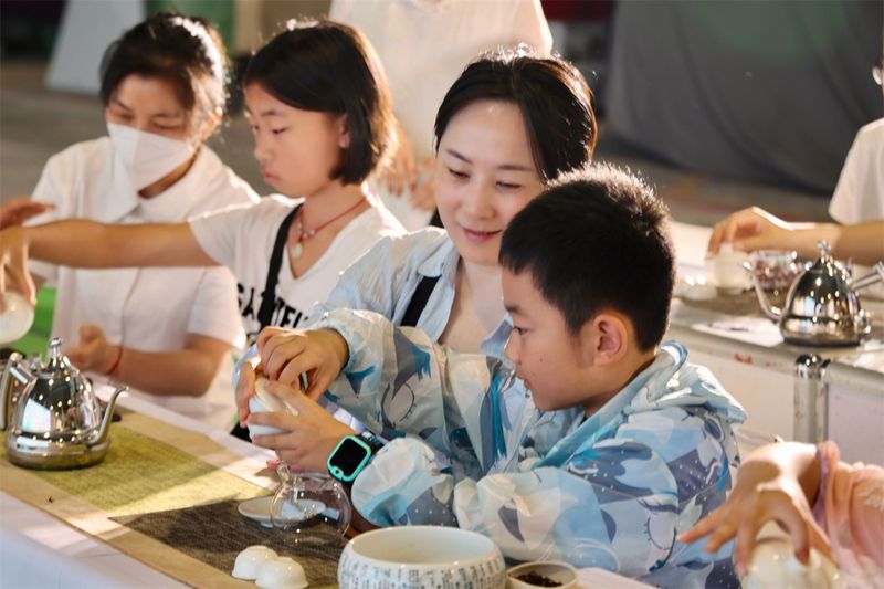 本届临沂茶博会正值儿童节,传统茶文化的传承成为了焦点。儿童节当天,茶博会舞台处举行了“亲子学泡茶”活动。活动现场,每组报名家庭的家长和孩子在茶艺师的带领下,一起赏茶艺表演、习茶礼、认茶器、学泡茶、饮茶汤,共赴一场难忘的茶文化传承之旅。