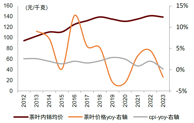 图表12:我国茶叶内销均价与CPI对比