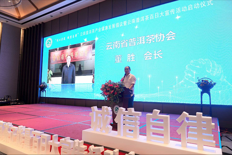 致辞中表示,在当前的市场环境下,茶产业面临着诸多挑战,虚假宣传、市场混乱等问题时有发生。作为行业协会,我们有责任引导和规范市场行为,维护行业的健康生长,持续推动茶文化与茶科技、茶产业的可持续、高质量发展。鉴于此,我们积极响应云南省普洱茶协会所倡导的“同心共筑,诚信自律”核心倡议和“云南普洱茶百日大宣传”活动,呼吁通过强化行业自律,促进公平竞争,确保产品质量,维护市场秩序,从而推动云茶产业向更加规范化、标准化、健康化的方向迈进。