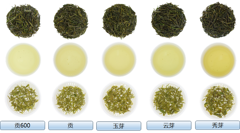 贡芽等级中分为贡和贡600两个类型,“贡600”指采用海拔600米以上的茶树鲜叶原料加工而成的符合品质要求的产品,是一款具有独特兰韵的绿茶产品,生产这款产品的茶树生长在高山上,环境优异、云雾缭绕、土壤肥沃,茶树以群体种为主,芽叶肥壮柔嫩,因此贡600等级的鲜叶要求以为一芽二叶初展为主,加工形成的绿茶外形较挺直似兰,芽心肥壮显毫,外形个体较大,香气清高、馥郁持久、显兰韵,滋味甘醇鲜爽、兰香入汤,叶底嫩厚成朵、嫩绿明亮。