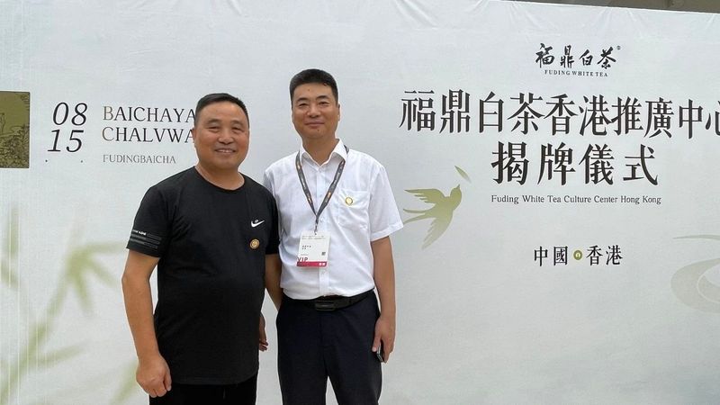 张郑库和福鼎市委书记林青一起参加福鼎白茶香港推广中心的揭牌仪式。
