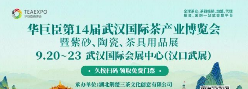 武汉茶盛,历久弥新。9月20-23日,第14届武汉国际茶产业博览会暨紫砂、陶瓷、茶具用品展,将在武汉国际会展中心(汉口武展)盛大开展!