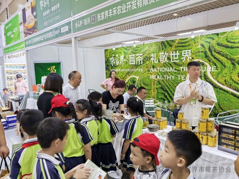 (展会现场,张家界莓茶展区人潮涌动)