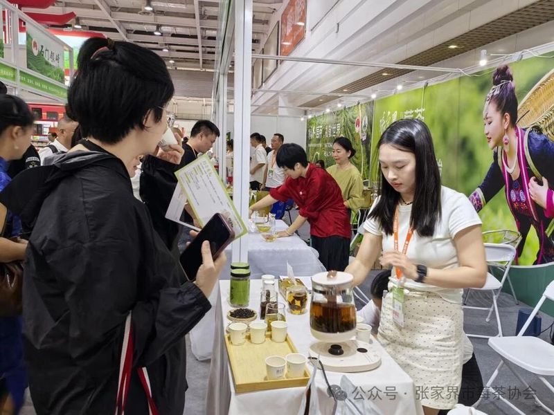 据悉,本届茶博会为期4天,张家界神州界农业产业开发有限公司、张家界丰禾农业开发有限责任公司、张家界相思莓茶种植有限公司、张家界市原产地莓茶园农业开发有限公司、张家界福安家云尖生态农业发展有限公司、张家界莓茶园农业开发有限公司共6家茶企参展,力争以精品体现张家界莓茶品质、展示莓茶品牌。现场观众纷纷驻足品尝,对莓茶的独特口感与显著的健康功效赞不绝口。