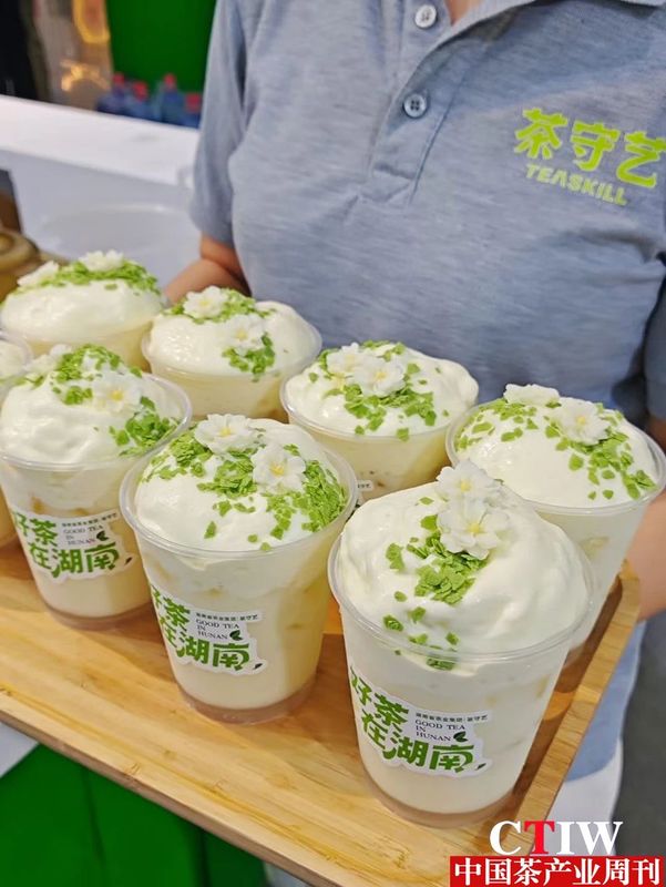 不仅如此,此次展会,茶守艺与湘益合作推出了新产品——“茉莉茯砖奶茶”茶粉,“茯砖奶茶,民族至味”,茯砖奶茶精选湘益5年以上的黑茶原料,黑茶制茶过程中在金花仓里通过发酵产生了特有的”金花”(冠突散囊菌),金花与黑茶有效成分相互作用产生了有益物质,再与新疆优质奶源相融合,口感醇厚丝滑,健康好喝无负担。