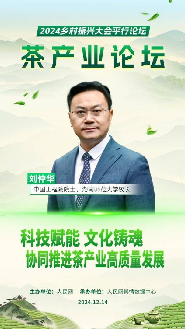 近日,由人民网主办、人民网舆情数据中心承办的2024乡村振兴大会平行论坛·茶产业论坛在京举行。中国工程院院士、湖南师范大学校长刘仲华通过视频连线形式,围绕“科技赋能茶产业,助力乡村全面振兴”的主题进行深入分享。