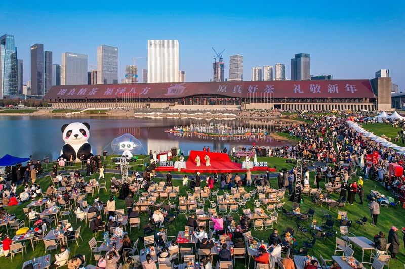 2024年12月31日晚,成都天府新区沉浸在“星河之约”跨年晚会的狂欢氛围之中,一场传统与现代交织、文化与激情碰撞的盛会,吸引着八方来客汇聚于此。而作为四川茶文化瑰宝的蒙顶山茶,以“传承非遗技艺 助力文旅发展”为主题惊艳登场,成为当晚璀璨星河下最具韵味的一抹亮色,散发着悠悠千年茶香,诉说着古老传承与时代奋进的故事。此次活动由雅安市委宣传部主办,雅安市名山区委宣传部、雅安市名山区农业农村局、雅安市名山区茶叶产业发展中心承办,四川蒙顶山理真茶业有限公司、雅安市名山区山和茶文化职业培训学校执行,得到了社会各界的广泛关注和支持。