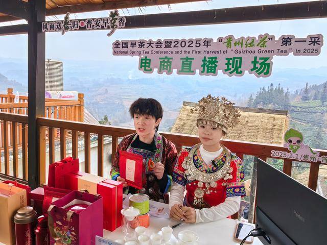 2025年1月1日,在被誉为“中国古茶树之乡”的贵州普安,全国早茶大会暨2025年“贵州绿茶”第一采活动如期举行。活动现场,一支身着民族服饰的直播团队格外引人注目,他们来自贵州电子商务职业技术学院直播社,通过直播活动现场与带货相结合的方式,积极宣传和推荐贵州茶叶。