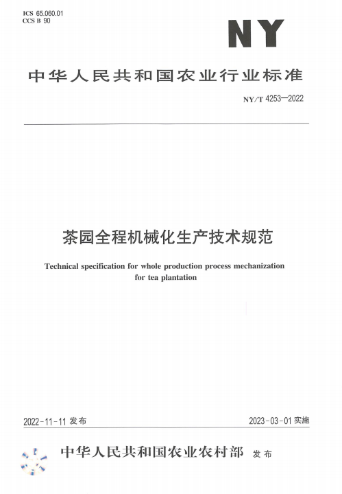 参照行业标准《茶园全程机械化生产技术规范》(NY/T 4253—2022)中关于茶园全程机械化生产管理的要求,有序开展茶园田间机械化生产管理。