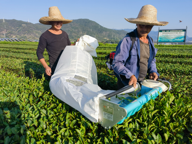 出口茶生产茶园的效益最终由采收环节决定,出口茶生产茶园可采用双人电动采茶机和遥控自走式采摘修剪一体机等茶园专用装备完成鲜叶的大规模采收。