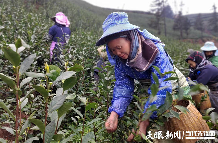 2月8日9时30分,随着云雾渐渐散去,位于普安县茶源街道联盟村苗寨垭口的茶山迎来了忙碌时刻。只见七八个采茶人身背竹篓,有序地步入种满乌牛早茶树的茶园,熟练地将粒粒饱满的茶芽摘下放进篓中。