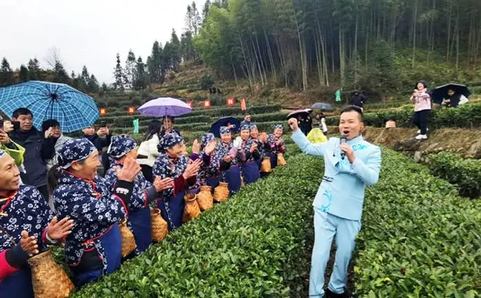 在赣南客家歌手谢德明的采茶歌声中,江西第一采开始了。童练达摄