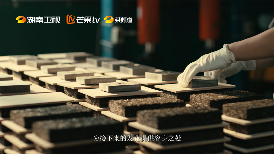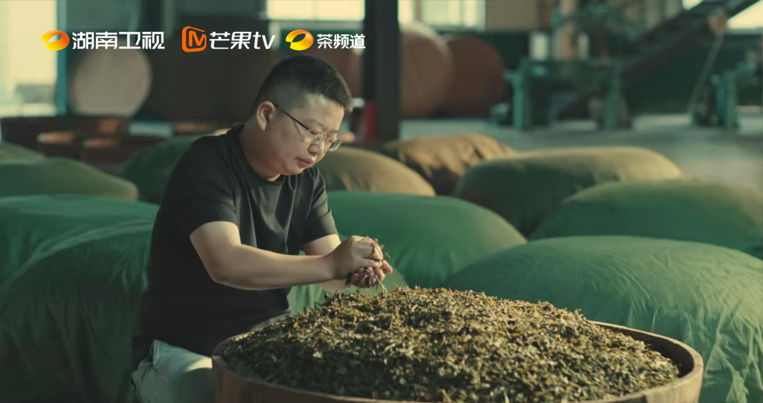 古法讲究“天时” 年轻一代有了自己新的思考 那就是探寻微生物和发酵的关系 鲜叶采下后摊晾杀青,揉捻出汁 再入木桶渥堆 茶叶在棉被下蜷缩十几小时 辛辣的酒糟味悄然弥漫 从生物热到微生物热 这是一场生命的接力 匠人对火的敬畏 刻在七星灶的每一道纹路里 松柴明火,低温慢焙 周六用九年光阴打磨四五十口灶 终得一方“专属七星灶” 灶面上,茶叶在抛撒中舒展 灶台下,松香火焰静默燃烧 四五十度的温柔火候 锁住茶香,亦锁住百年焙火智慧 千两茶,是茶与竹篾的共舞 165公分的篾篓中 茶农以脚力踩制 竹条翻飞如龙,箬叶隔绝杂菌 日晒夜露四十九天 茶体吐纳活水 终成“世界茶王” 2022年,这项技艺入选人类非遗 因机械永不能替代匠人的温度 茯砖之魂,藏在一粒粒“金花”中 清朝纪晓岚流放新疆时 靠茯砖解肉食之腻 今人方知,奥秘在于冠突散囊菌 这金色微生物可以分解粗纤维,化茶为药 “懂茶之人喝的不是金花 而是它转化的风味” 周六选择冬日发花,以低温避免杂菌 他虽然用微生物视角重新诠释发酵 用智能烘房调控温湿,却仍敬畏时间 老匠人也在筑茶砖时留上缝隙 为金花辟容身之所 库房中黑茶静默陈化 菌花香无声蔓延 “老祖宗的东西很高级,我们只是完善与积累。” 年轻茶人接过火种 在传统中植入科学的基因 让黑茶在新时代继续生长 捧一杯安化黑茶 饮下的是七星灶的松香、金花菌的“绽放” 也是一杯被湖湘匠人打磨的慢时光 茶中无捷径,唯光阴真味 匠心有传承,守正亦求新 由中共湖南省委宣传部指导 湖南广播影视集团有限公司 (湖南广播电视台) 湖南卫视、芒果TV出品 芒果伯璟、伯璟文化制作的 四集纪录片《安化黑茶》 于3月17日至20日 周一至周四19:30 在湖南卫视、芒果TV 茶频道同步播出