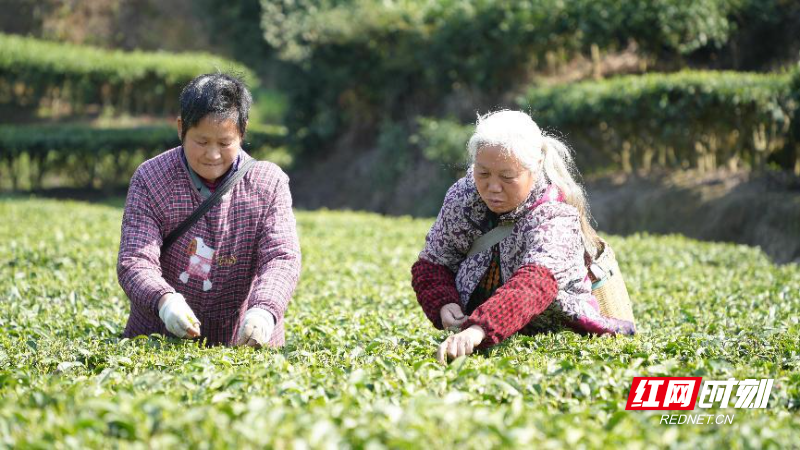 红网时刻新闻3月21日郴州讯(通讯员 李永东 艾学杰)春日百花艳,茶树吐新绿。连日来,随着气温的逐步回升,茶树冒出了嫩绿的芽叶,在宜章县莽山瑶族乡钟家村,当地瑶胞抢抓农时采摘明前茶,满足春茶市场供应需求。