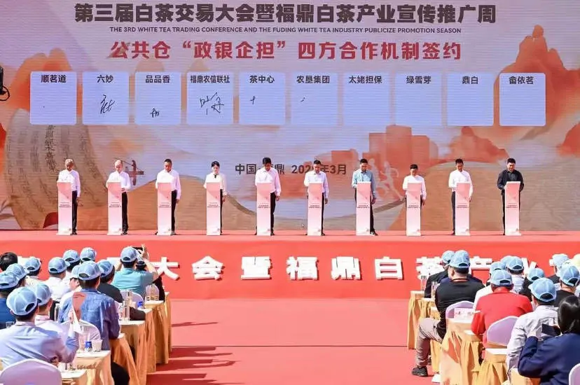 福鼎白茶公共仓“政银企担”四方合作机制签约仪式现场(谢何书 摄)