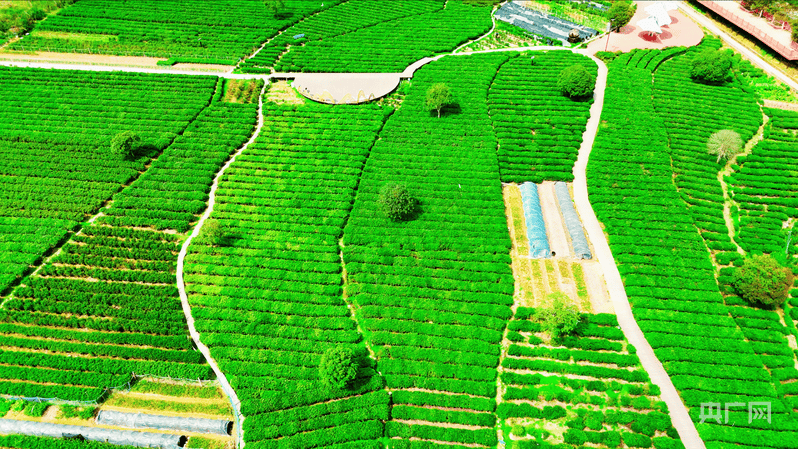 航拍遂川县汤湖镇茶园,放眼望去满目葱郁,茶香浮动(央广网发 李书哲 摄)
