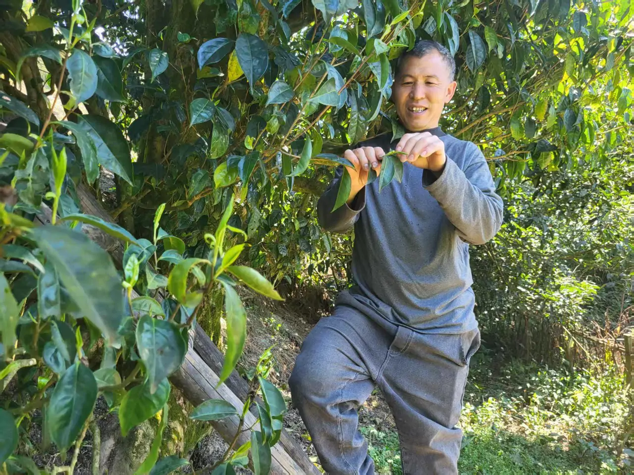 “我家有14棵老古茶树,后来又新种植了100多棵,每年销售古树茶青收入就有1万多元,它们就是我在大山深处的致富宝贝。”村民曾庆强搭着梯子,正在一棵千年古茶树旁采摘茶青嫩芽,脸上露出满是喜悦。