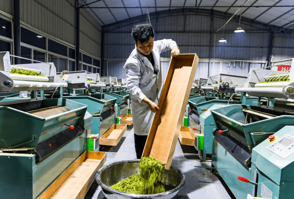 “机械化加工流程与制茶师傅们多年制茶经验相得益彰,不仅可以提高生产效率,还最大程度保证了茶品质。”厂房生产线上,保基茶叶种植农民专业合作社生产部工作人员一边观察茶叶加工情况一边说。