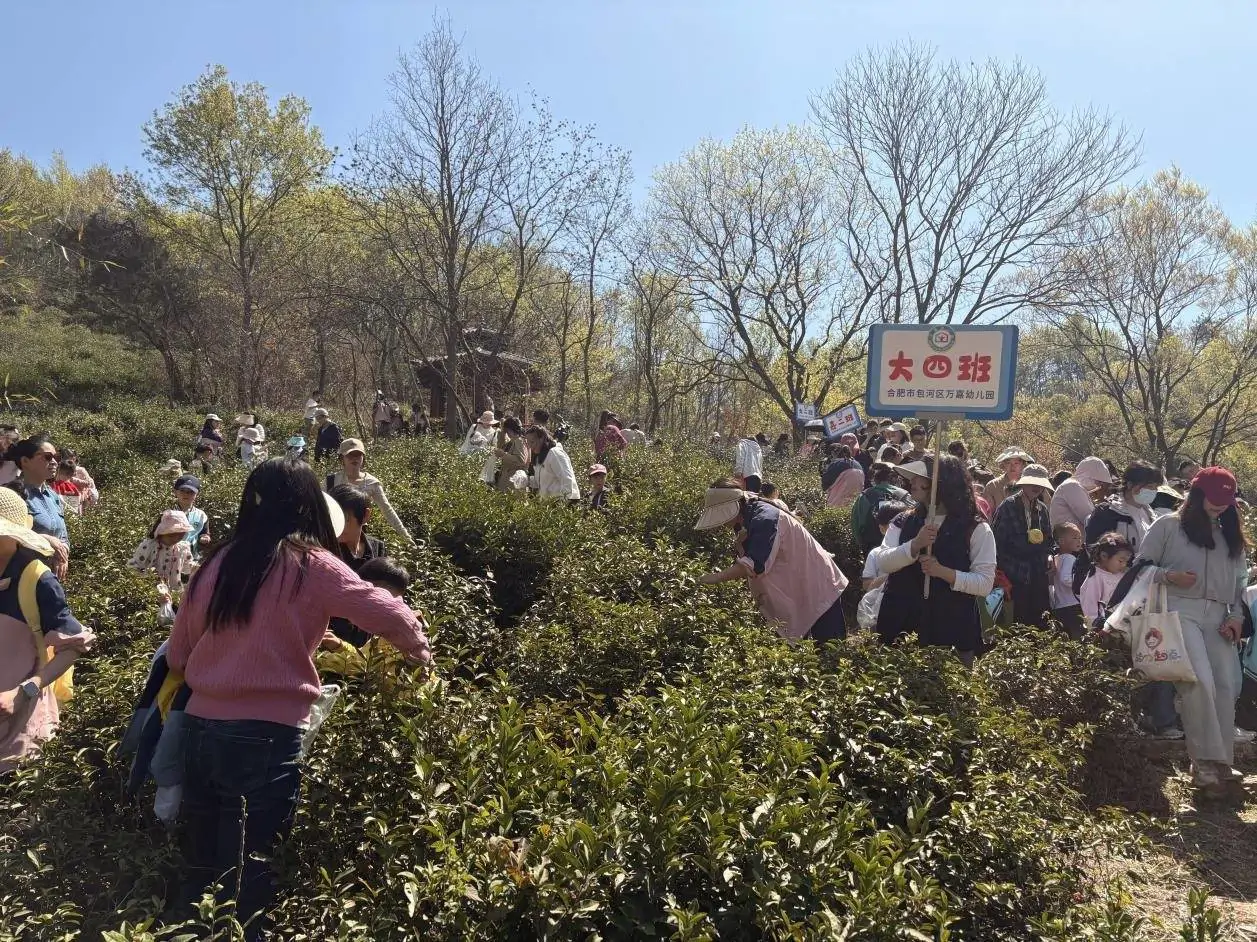 3月25日上午,在长冲村的一处茶园里,来自合肥包河区万嘉幼儿园的500余名师生及家长在这里采茶。“小茶农”们穿梭在茶丛间,细心挑选,小心翼翼地摘下一片片嫩芽,体验采茶的乐趣。