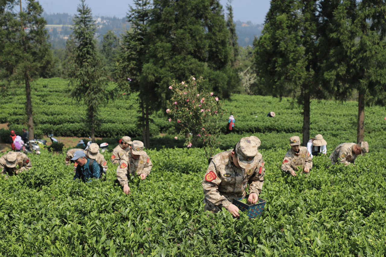 明前新茶贵如油。天气回暖、雨水丰盈,水城区茶叶种植基地陆续迎来了采摘季。令人“尴尬”的是,“每天都在出芽,人手严重不足。”为了缓解劳动力缺乏带来的压力,让当季春茶能抢“鲜”上市,水城区人武部及时组织最强外援——“民兵助农服务队”迅速就位,协助村民抢收新茶,勒紧群众增收“钱袋子”。