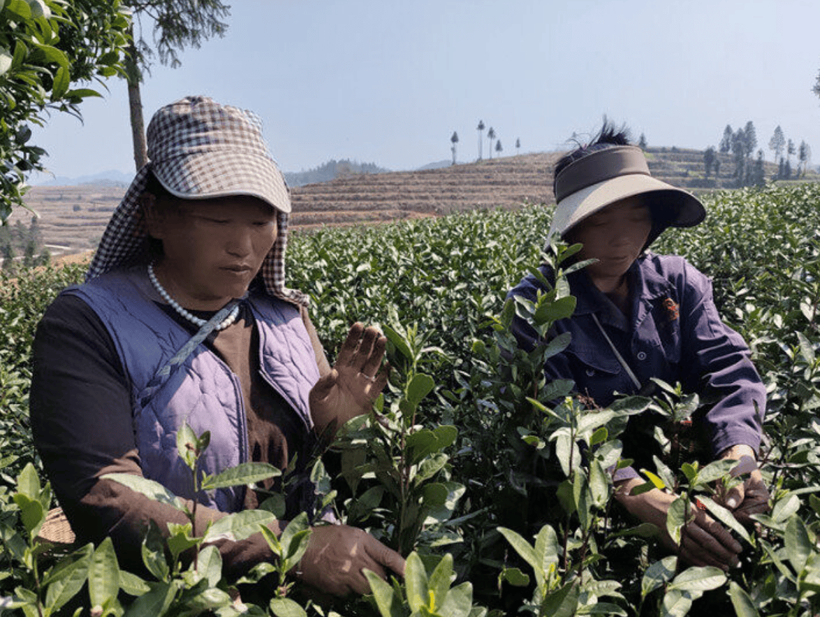 贵州和鑫农业公司总经理夏和成说:“我们通过土地流转+技能培训模式,带动我村周边300户1400余人增收。同时,我们每次在采茶前都进行相关技术培训,提高茶青品质,提高村民采茶效率。”