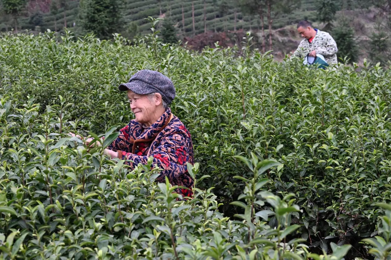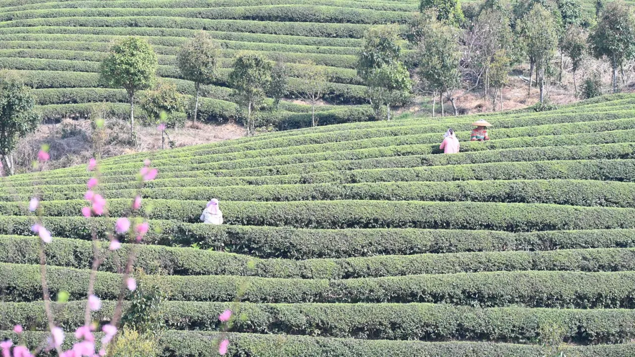 茶山已醒,嫩芽待摘。随着天气回暖,贵州省岑巩县天马镇1万余亩茶园陆续进入采摘时节。眼下,天马镇苗落村黔凝香有机茶园里,层层叠叠的茶田荡漾绿波,鲜嫩的新芽青翠欲滴,茶农们穿梭茶垄之间,双指在枝叶间舞动,翠芽便掉落在茶篓之中,堆满了春茶丰收的喜悦。