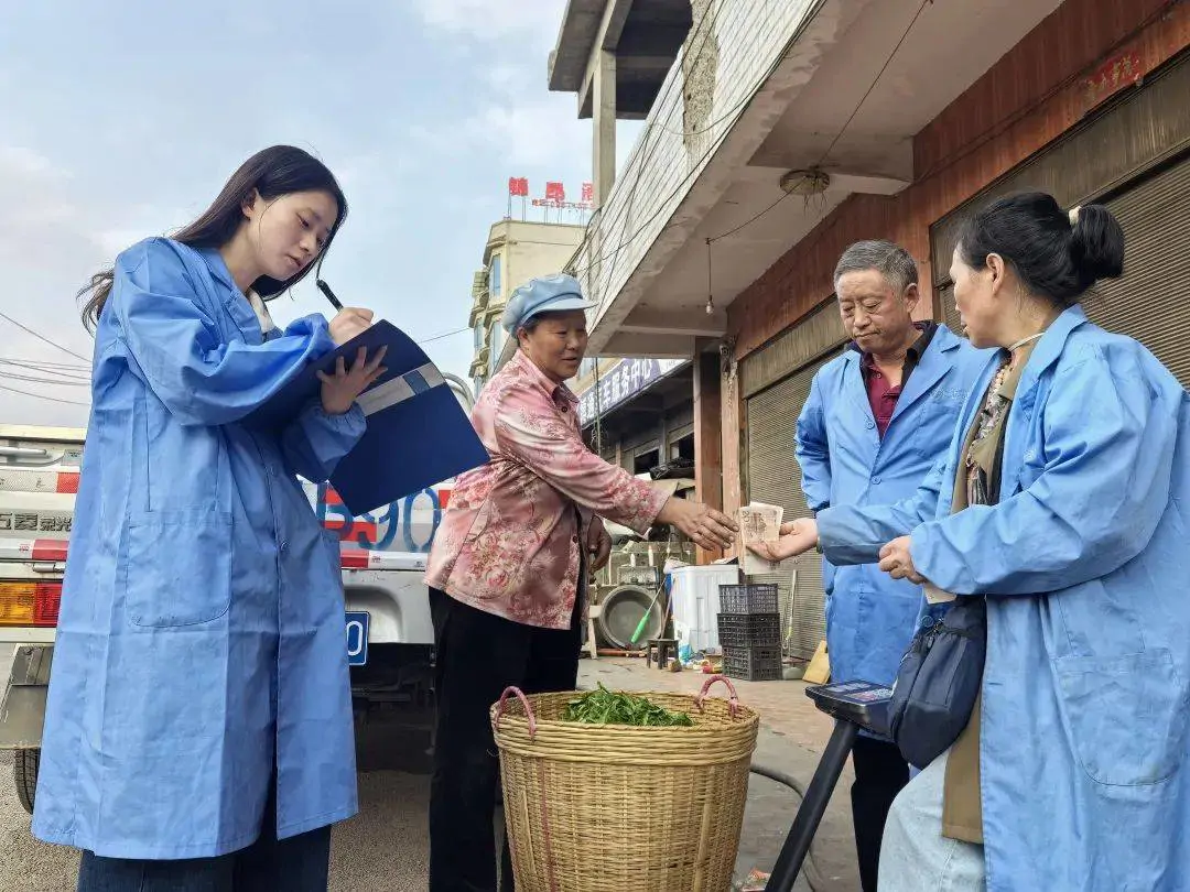 茶厂工作人员到炉山镇新庄村上门收购茶青