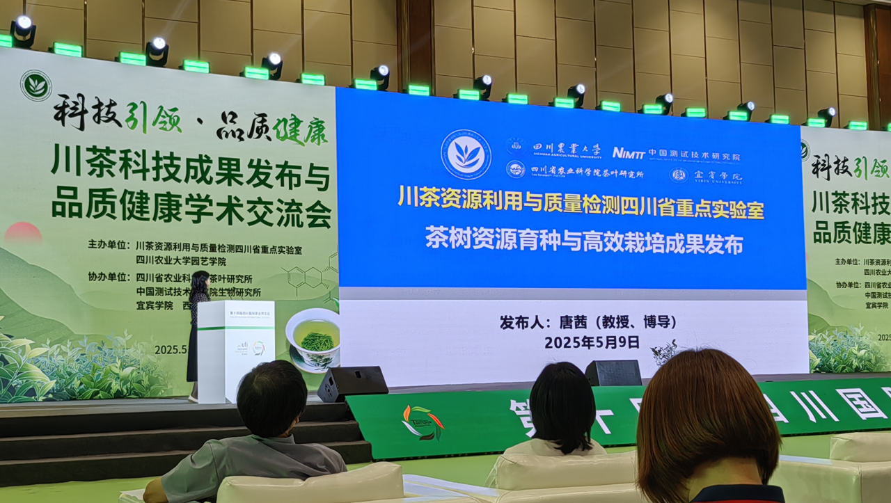 为深入贯彻落实四川省委、省政府关于重点产业链建圈强链——精制茶加工产业建圈强链工作部署,5月9日下午,由四川农业大学川茶资源利用与质量检测四川省重点实验室和园艺学院主办,以“科技引领・品质健康”为主题的川茶科技成果发布与品质健康学术交流会在成都世纪城新国际会展中心圆满落幕。交流会以科技成果转化与学术交流为桥梁,汇聚了省内外茶学专家学者,茶叶主产市、县农业部门负责人,龙头企业主要负责人,共计300余同行参会。