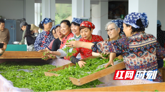 周鑫推行“公司+基地+贫困户”帮扶模式,免费为农户提供茶苗与技术支持,以高于市场价10%的价格收购鲜叶;2018年,公司申请国家重点产业扶贫项目,精准对接143户贫困户,量身定制产业帮扶计划,并吸纳脱贫户到茶厂务工,月均工资超过3000元。此外,她还搭建线上销售平台,帮助脱贫户销售腊肉、天麻等农产品,高峰期单日销售额突破3万元。62岁的脱贫户黄鹤文在茶园务工的日子里,他不仅掌握了采茶、制茶技能,年收入还超过4万元,他感慨地表示:“我们村现在有四、五十人在帮她做事,我在这里也有七、八年了,我们摘的茶叶都是直接卖到她的茶厂,平时她还会给我们推销土特产,造福了我们这些村民。”