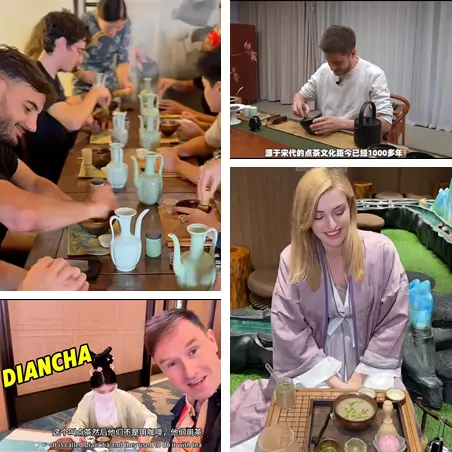 中国茶文化不仅在饮茶,更是中国文化的载体。以“点茶”为例,随着古装电视剧《梦华录》的热播,这一古老技艺正焕发新生。润筅温盏、7次注汤、茶筅击拂……在社交媒体上,不少外国友人在品味茶香的同时,也领略到了中国茶文化的博大精深。他们表示,源自宋代的点茶文化距今已有1000多年,当时还有个很美的名字“雪乳云汤”,尝试复刻当时的茶文化,有种穿越的奇妙感觉!