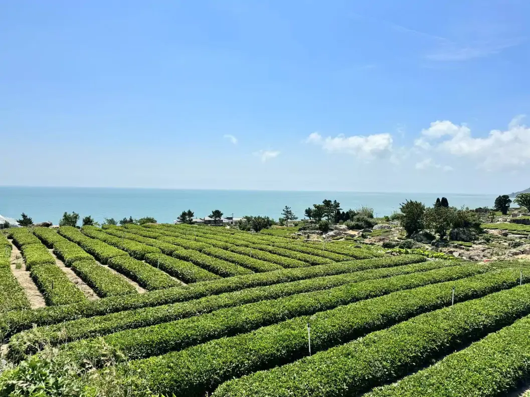 青岛崂山,位于黄海周边的采茶园。